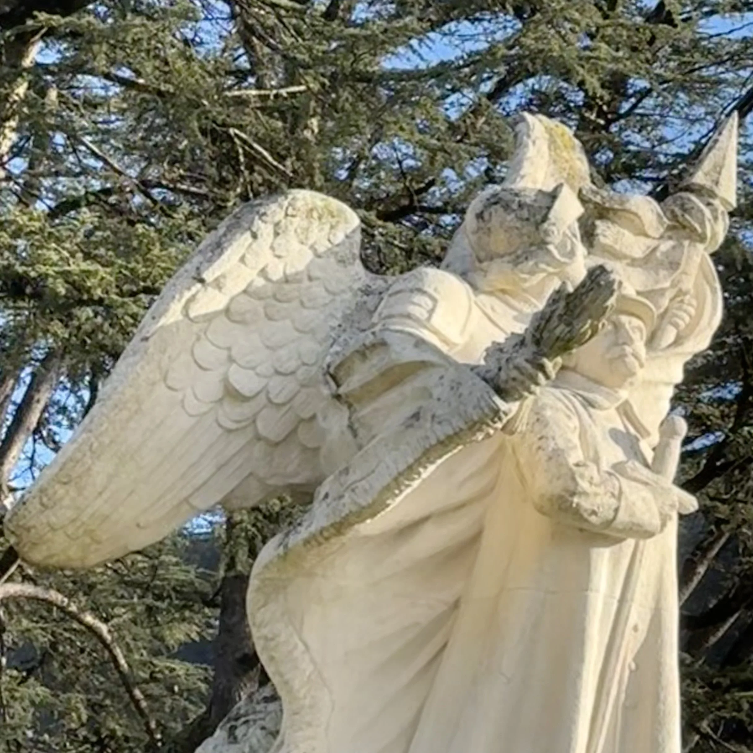 This intentional practice of cultivating awareness also heightens my perception of familiar things that might otherwise go unnoticed: a temporal view of mountains revealed by fallen leaves, the reflection of clouds in a fountain pool, or the soft curves of carved angel wings on a nearby monument.