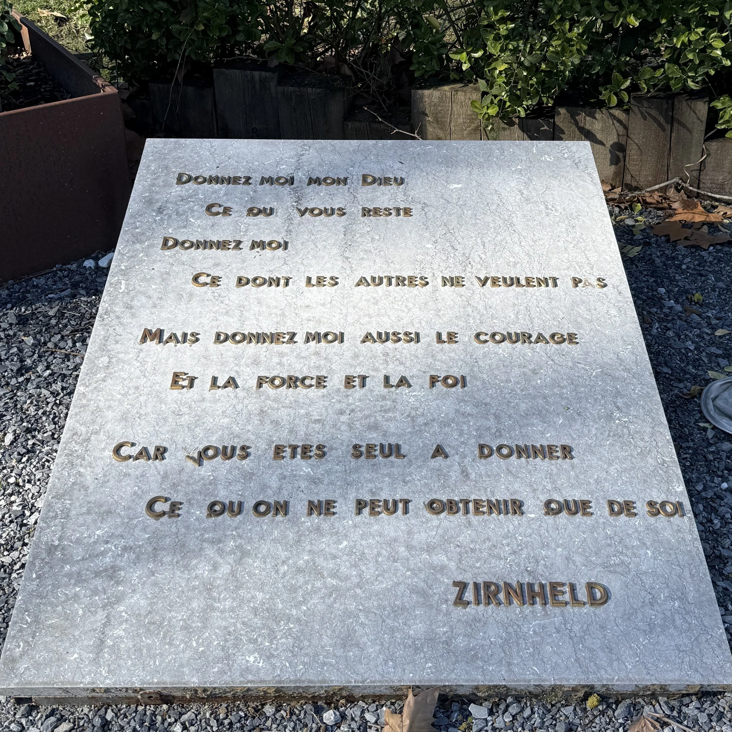 Memorial Above: Excerpt from the Paratroopers Prayer, written in 1938 by André Zirnheld (March 7, 1913 – July 27, 1942). He was a Free French paratrooper and member of the Special Air Service during World War II, famous for being the first French paratrooper officer killed in action and for his poem. He was awarded the title of Companion of the Liberation.